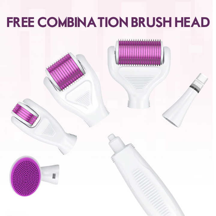 Unlock smoother, healthier skin and promote hair growth with the 6-in-1 Micro Needle Derma Roller Kit. Featuring 1200 microneedles, this high-quality derma roller helps stimulate collagen production and enhance the absorption of your favorite serums and treatments. Whether you're targeting skin texture, wrinkles, or hair thinning, this versatile tool provides professional-level results in the comfort of your home. With multiple interchangeable heads for different areas of the face and scalp, this kit is perfect for anyone looking to improve their skin care and hair growth routine.