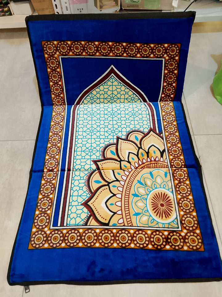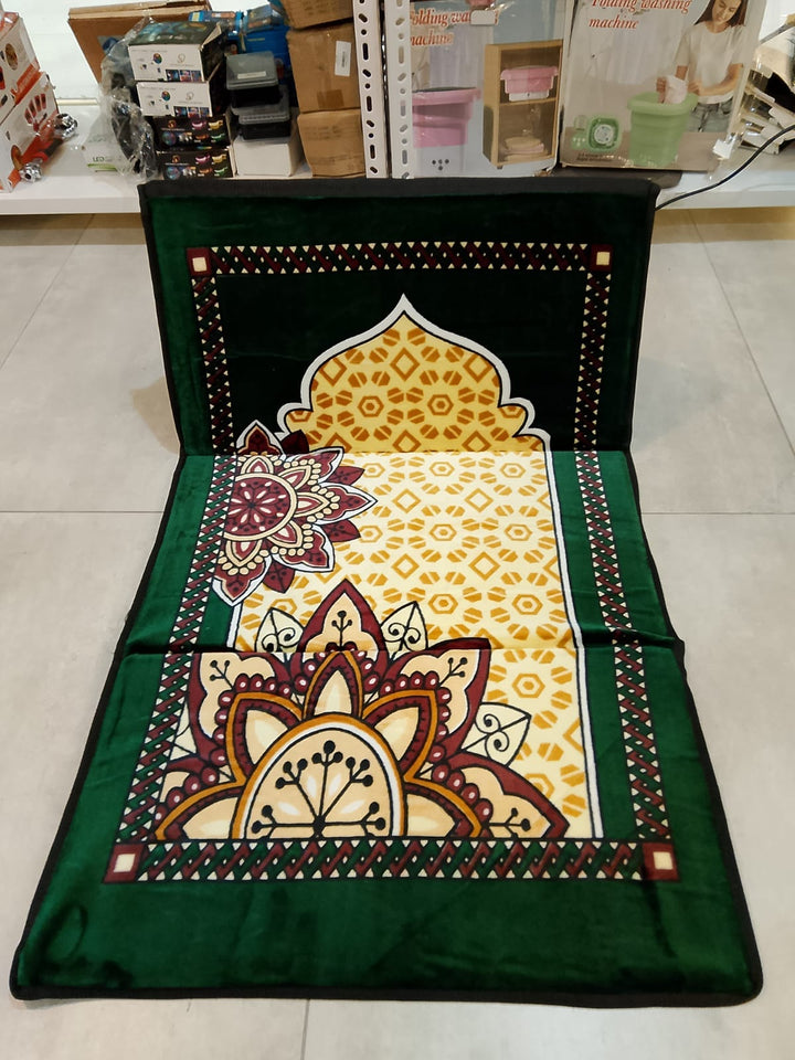 Crafted with high-quality materials, the prayer mat features intricate Islamic patterns that add elegance to your prayer space. The foldable design makes it easy to store and carry, making it an ideal choice for the elderly or those who require back support while praying.