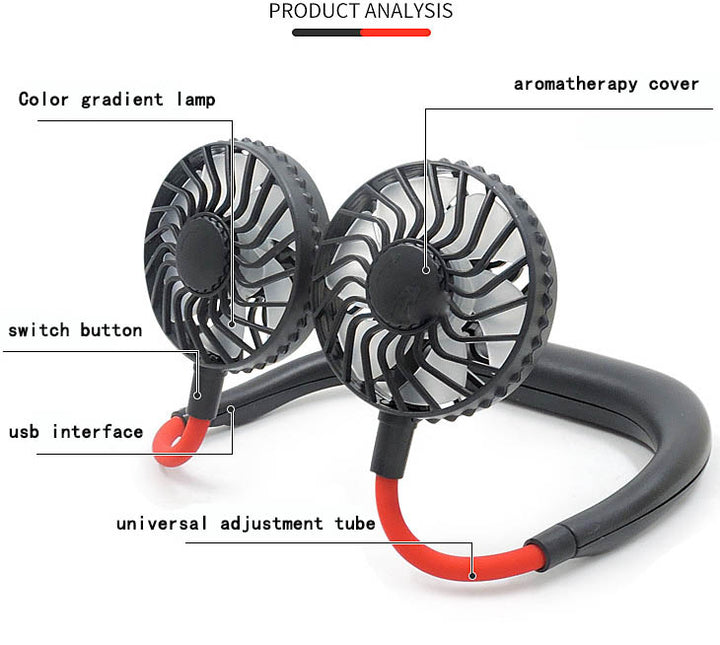 Rechargeable Hands-Free Neck Fan – Dual Adjustable Blades